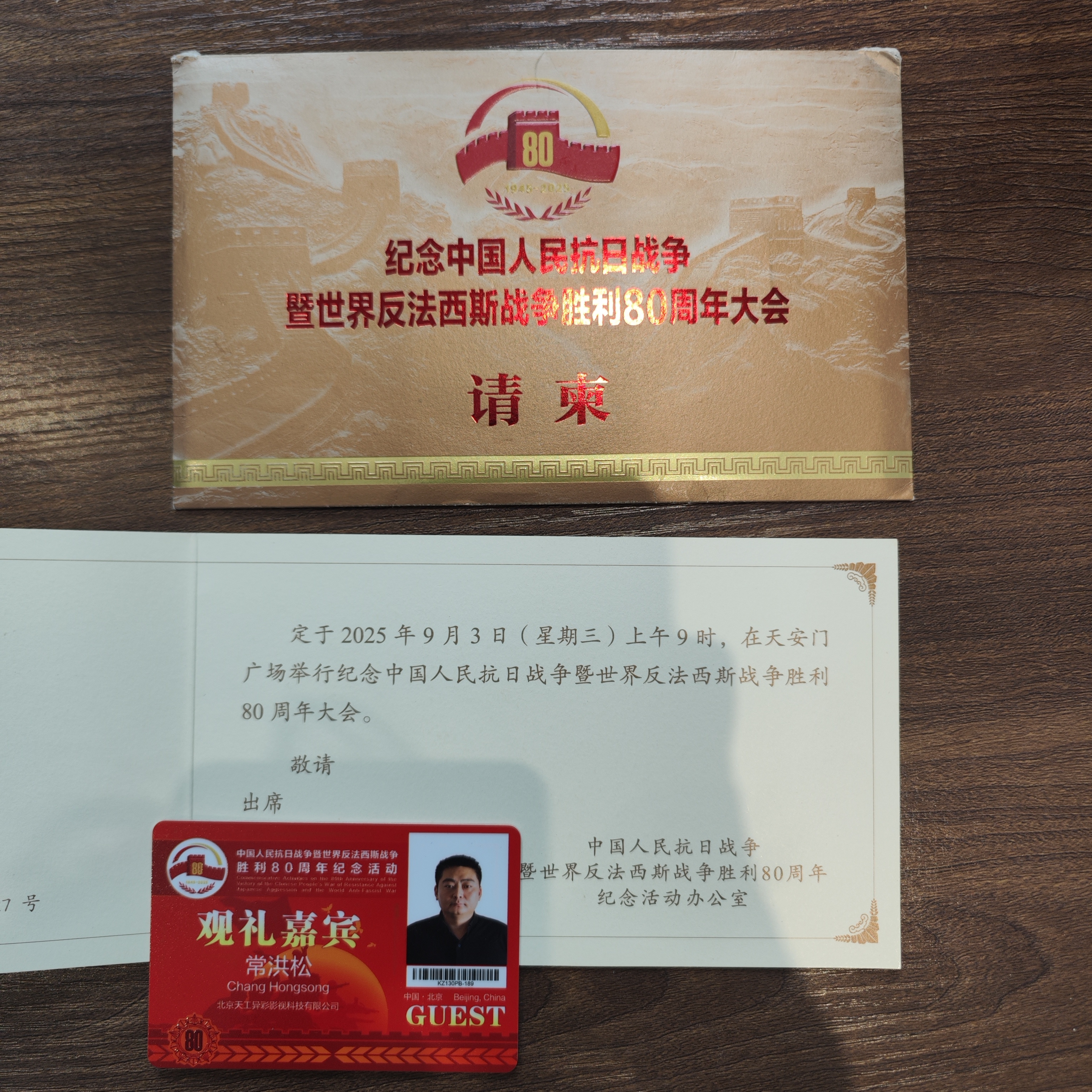 9月3日,中国人民抗日战争暨世界反法西斯战争胜利纪念日阅兵式在北京天安门广场隆重举行。天工产业学院院长常洪松作为教育与文化产业代表之一,受邀参加观礼活动,与全国各界优秀代表共同见证了这一展现国家实力与民族自信的历史性时刻。