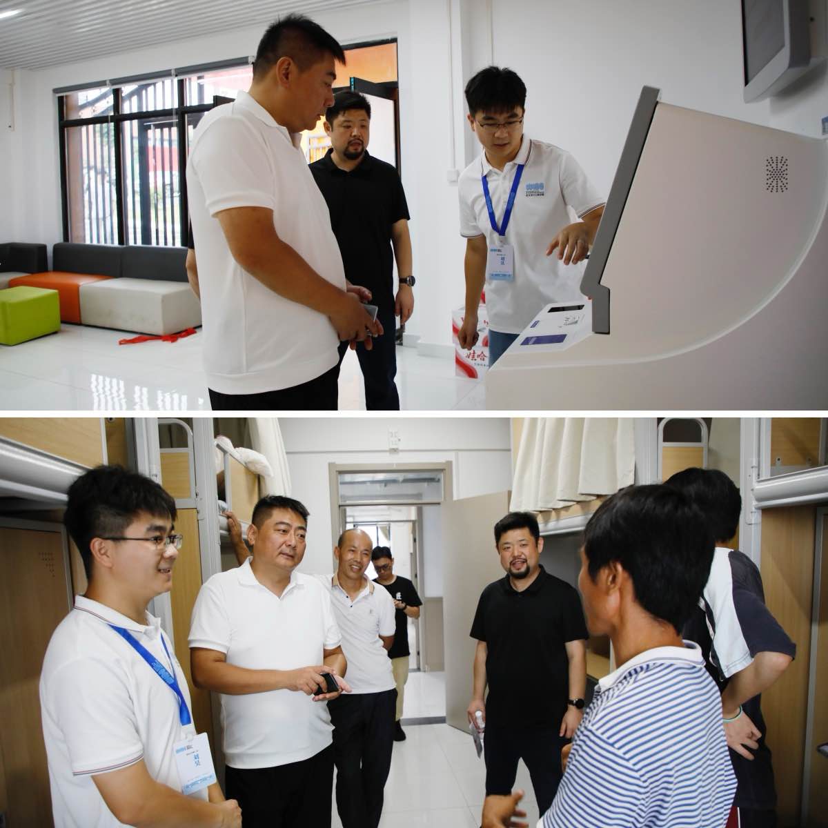 图5、6:辅导员带领学院领导到寝室与新生、新生家长进行交流