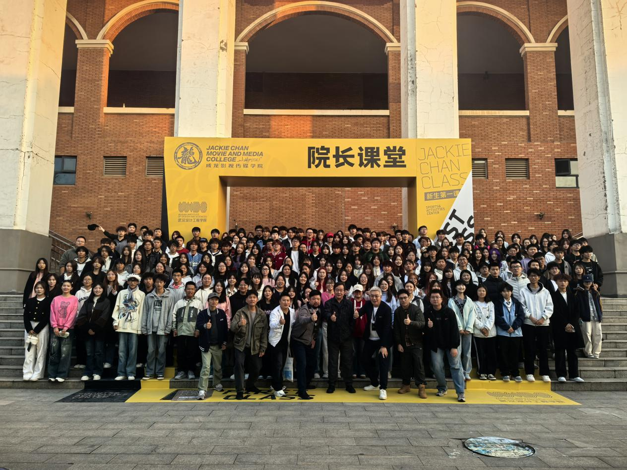10月22日,武汉设计工程学院天工产业学院学子受邀参加成龙影视传媒学院“院长课堂暨新生第一课”,奥斯卡终身成就奖得主成龙院长亲授成长秘籍,分享个人奋斗历程、艺术追求与家国情怀,为学子们带来深刻的人生启迪。