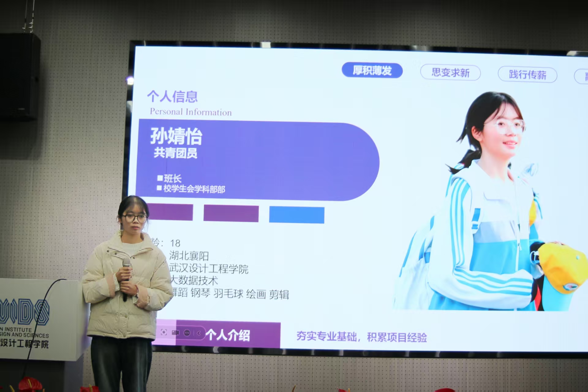 大数据技术专业的孙婧怡,有着ENFP人格的乐观与热忱,却毅然锚定辅导员职业方向。她凭借丰富的学生工作经历、突出的沟通协调能力,立志成为“以青春育青春”的引路人。她的规划清晰而扎实,短期夯实专业基础、考取教师资格证,中期深耕班级管理与学生会工作,长期瞄准考研,在立德树人中实现价值。用大数据的严谨赋能育人的温暖,在服务同学中沉淀成长力量。